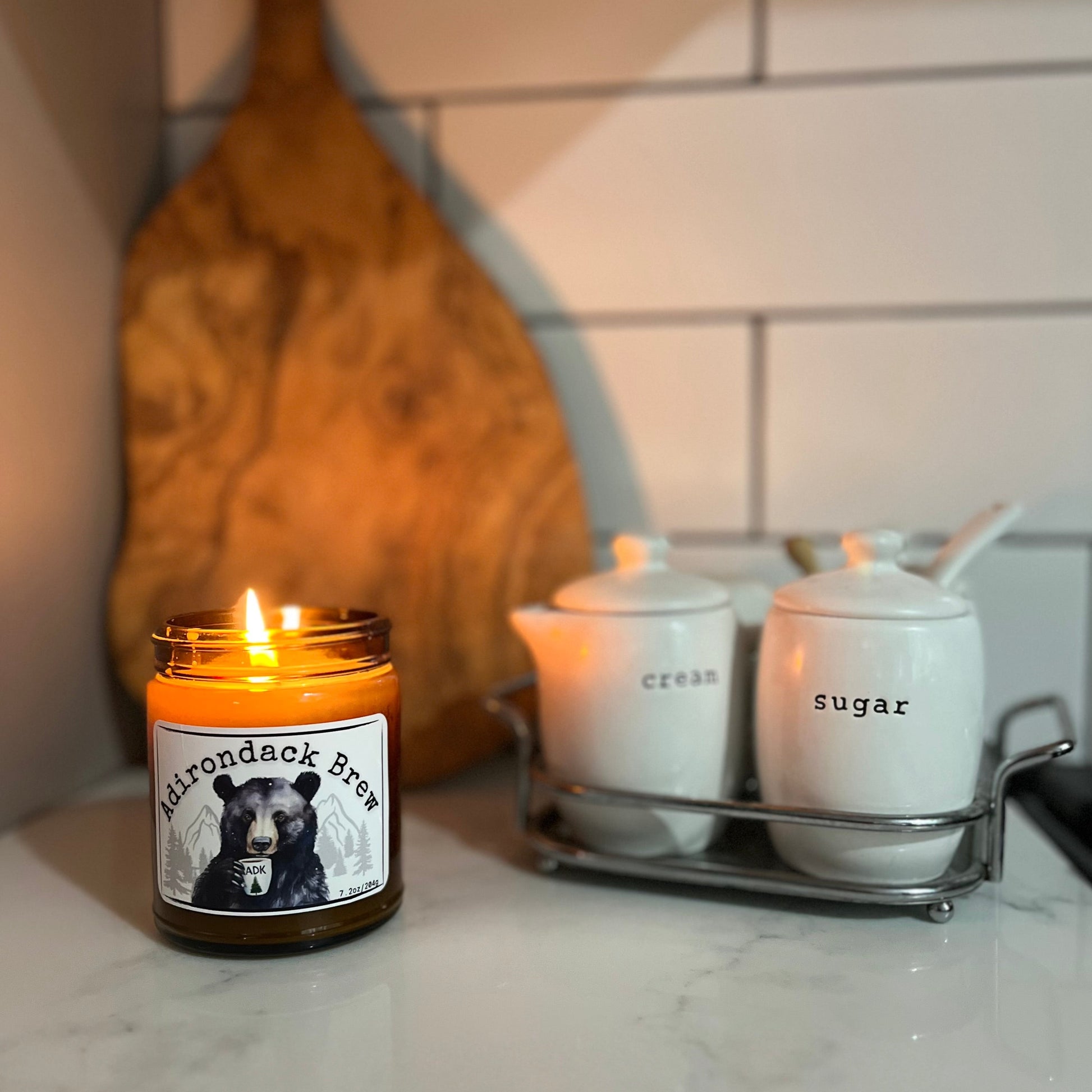 Adirondack Brew Candle offers a warm, authentic coffee scent.