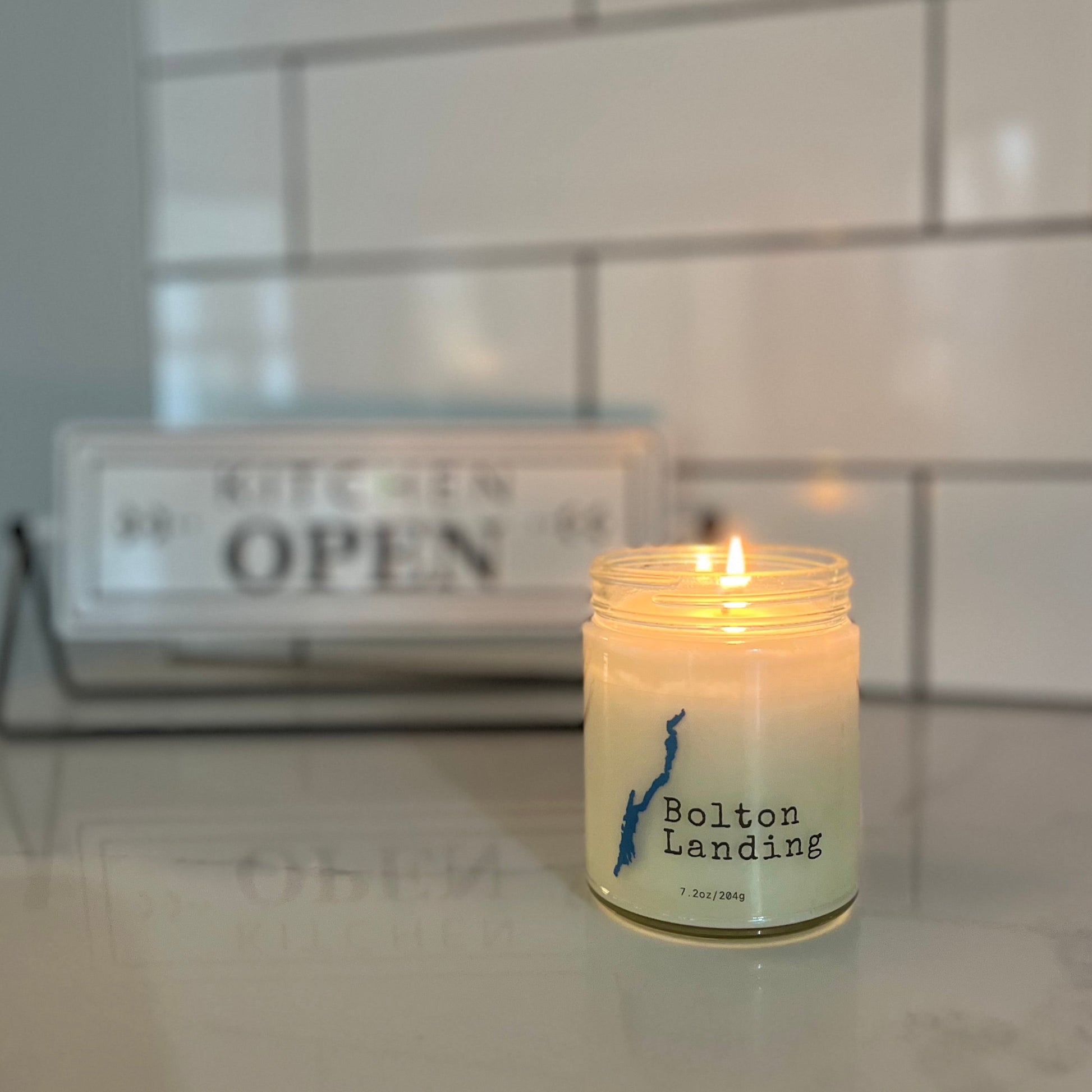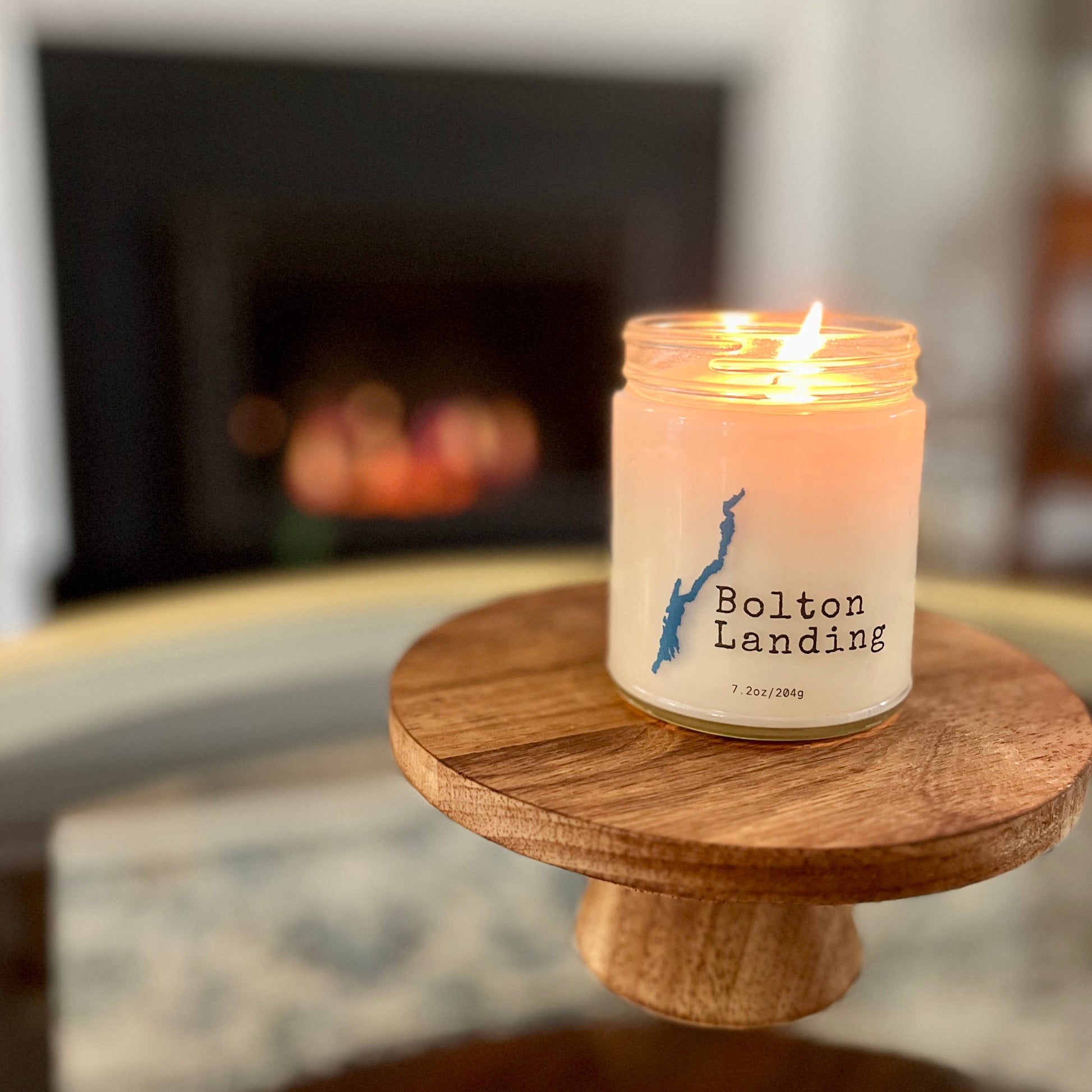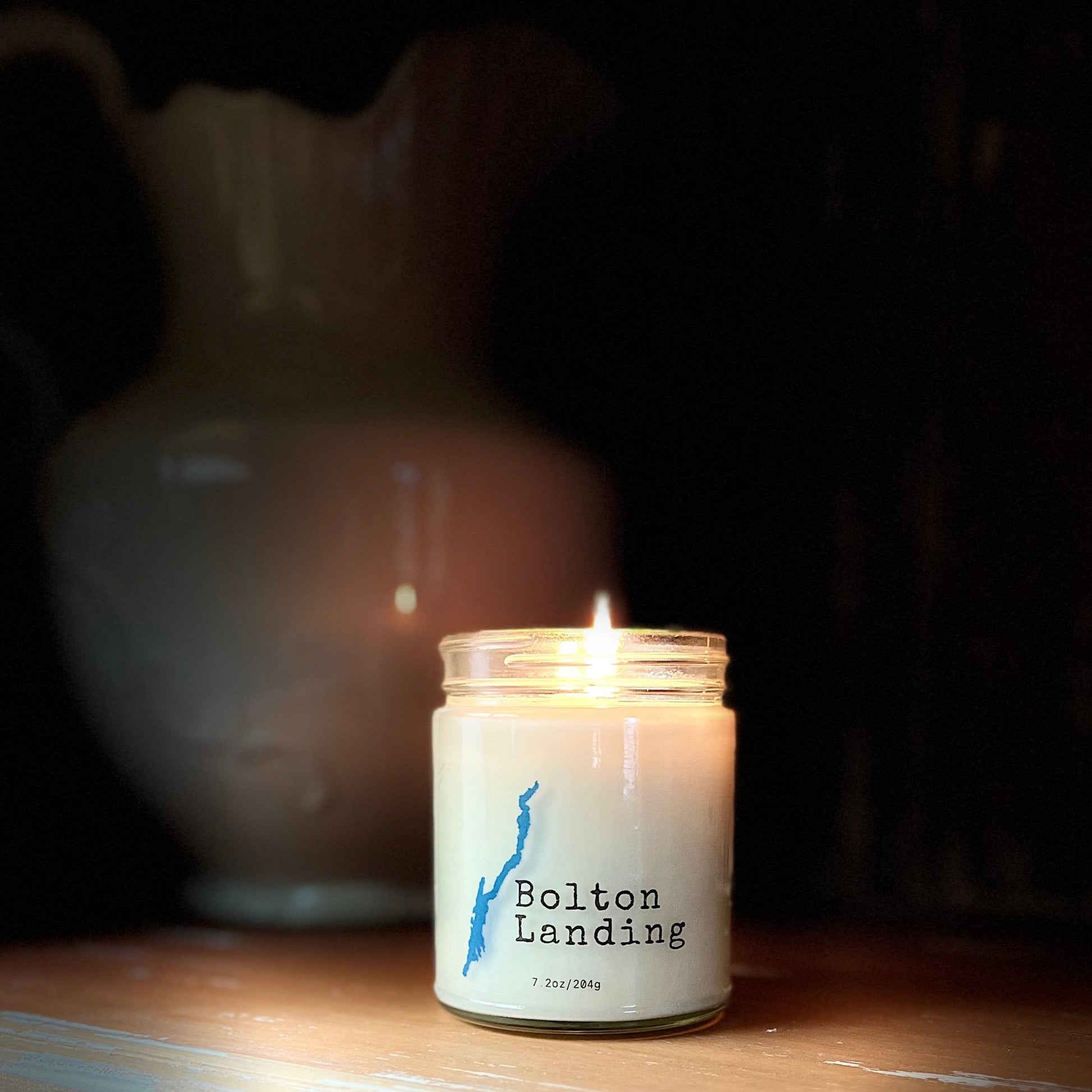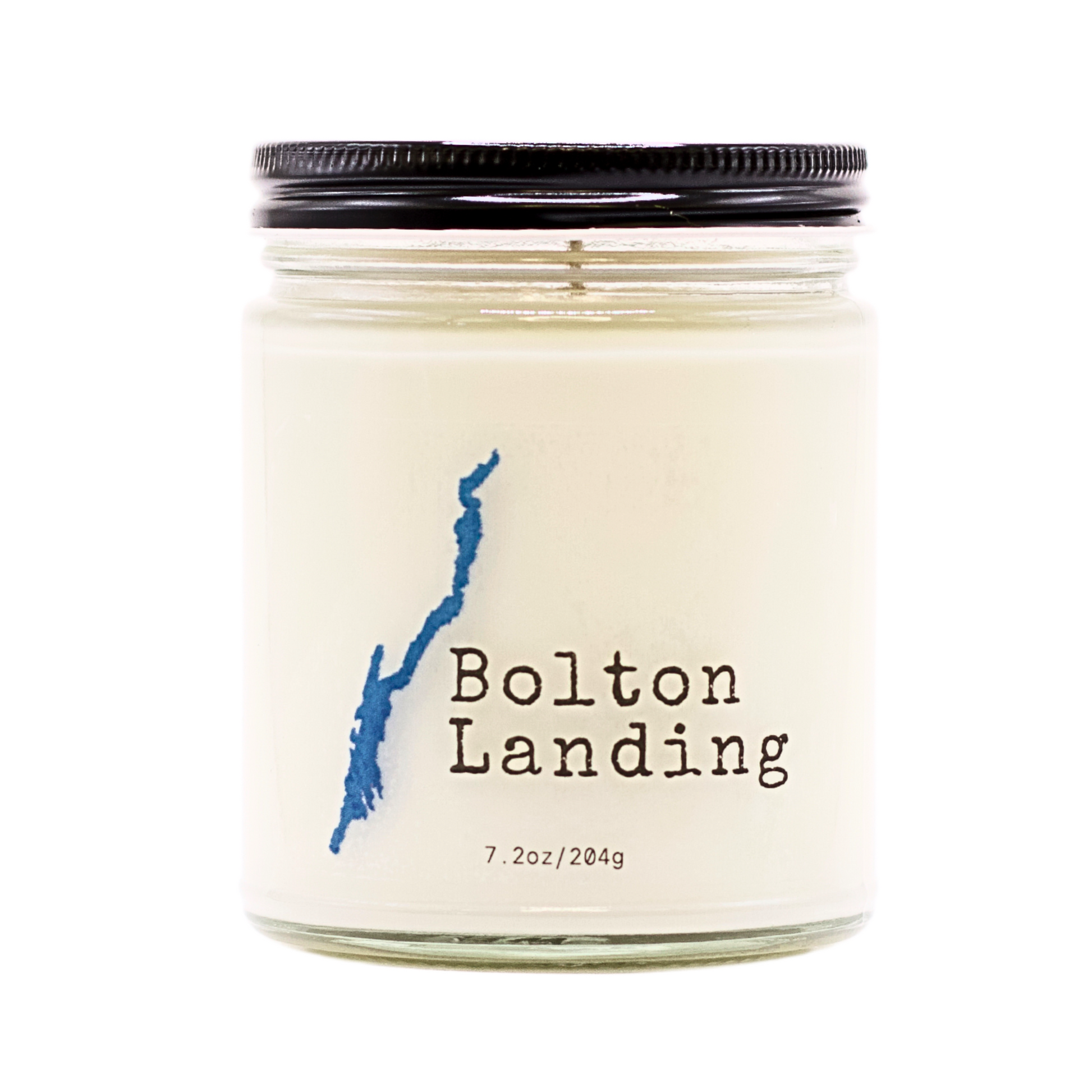 Our Bolton Landing candle features the iconic outline of Lake George.